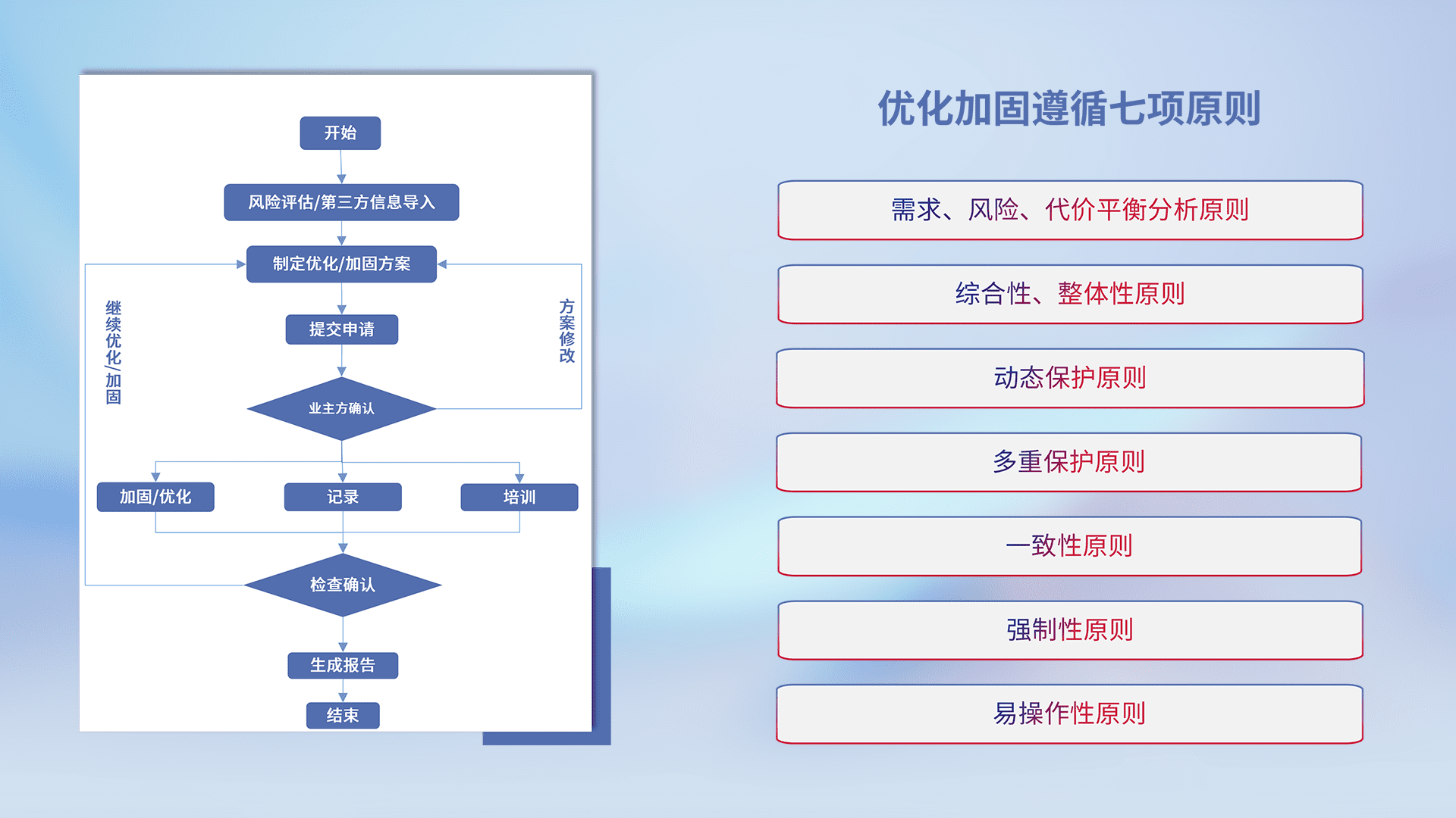 最大程度利用现有资产,,,,对评估发现的问题进行封堵与整改,,,防止漏洞被利用,,,提升整体网络安全性,,为客户带来高标准的优化加固服务。。